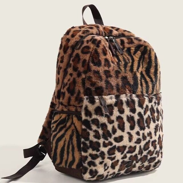 【Wildly Mixed Design, Soft Fur Touch】New Leopard Print Multi-color Large Capacity Backpack